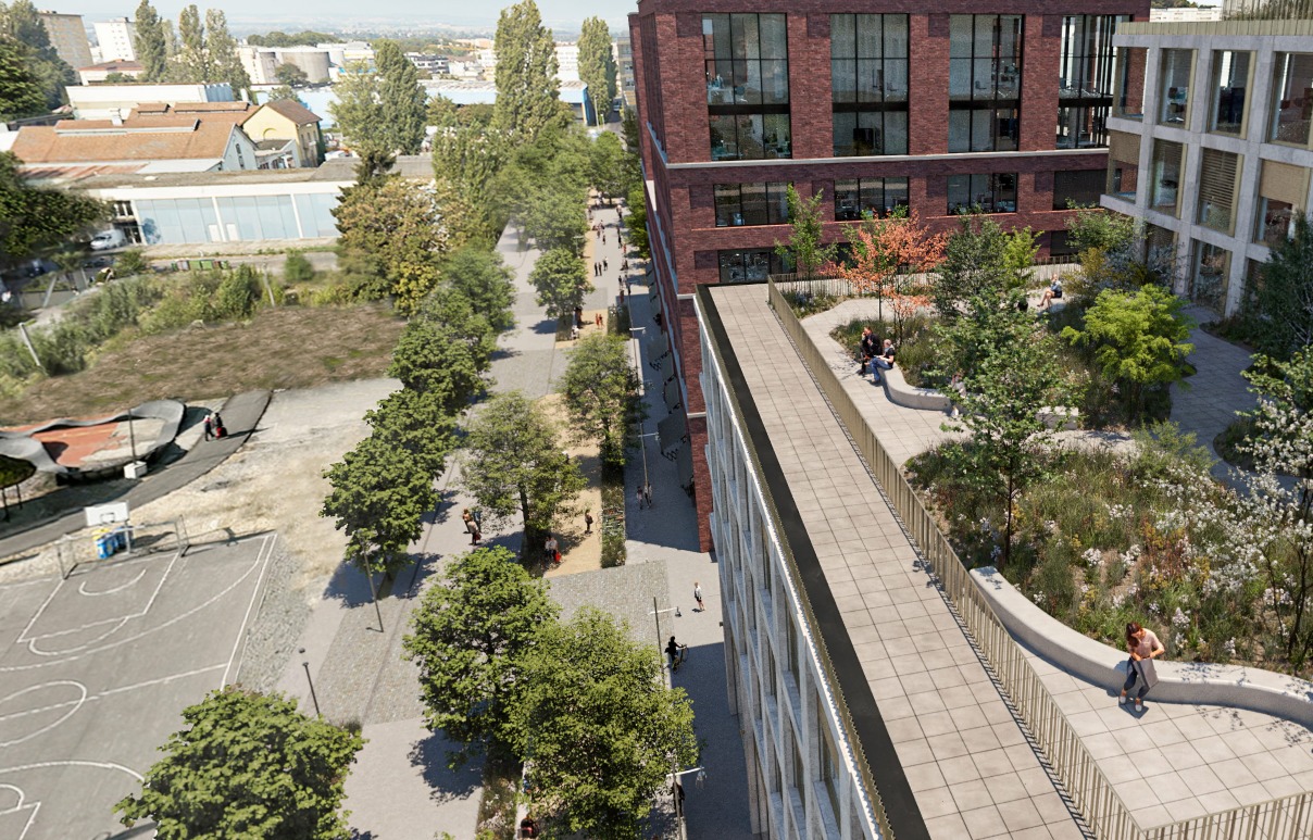 Le chemin des Bouchers sera vouée aux piétons et aux cyclistes. Végétalisée et équipée de stationnement vélo, il longera le quartier au nord et reliera le Trait d’union, la Place de Malley, la Place de la Gare et l’Avenue du Chablais.