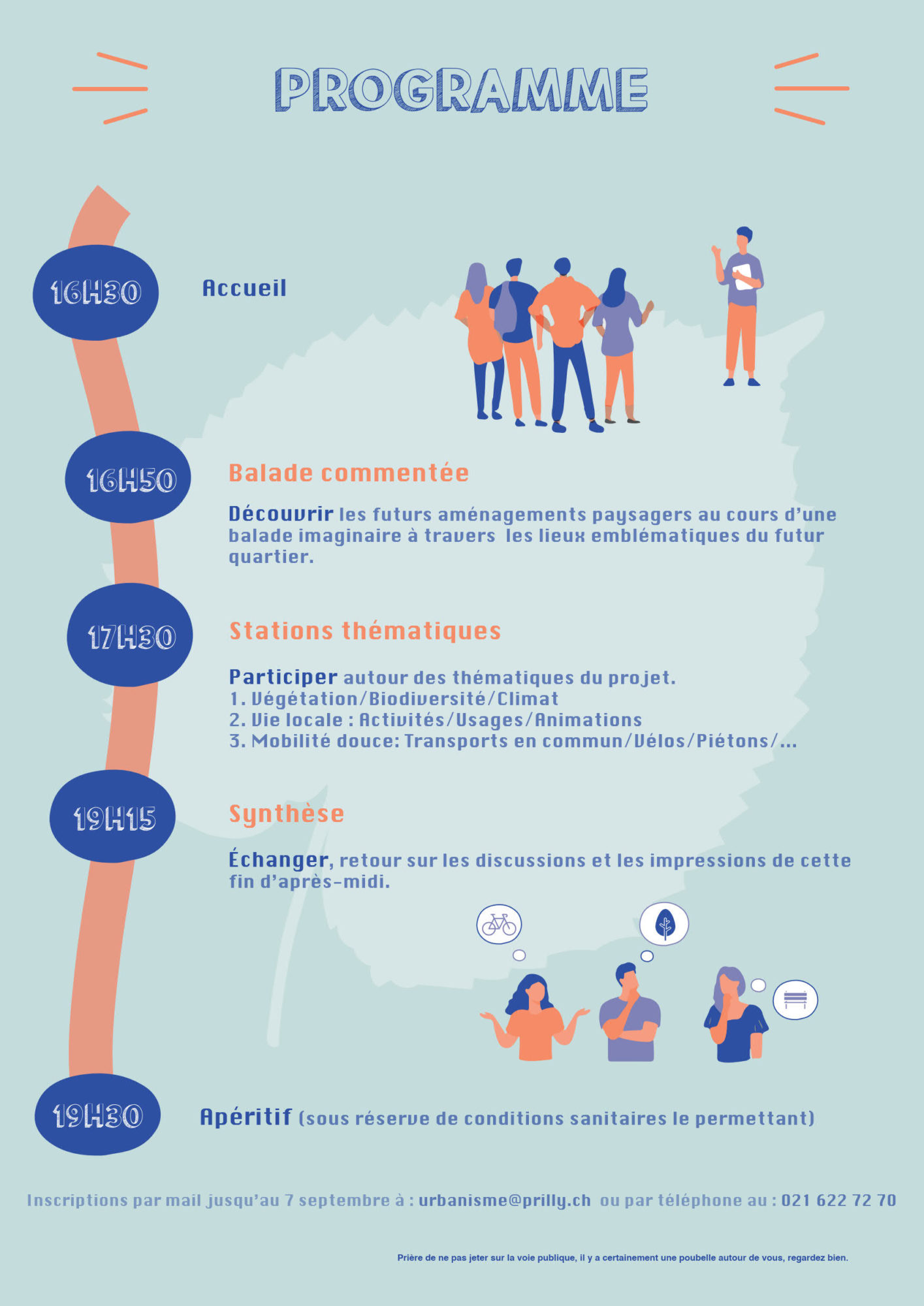 L’inscription est possible par courriel jusqu’au 8 septembre à : urbanisme(at)prilly.ch ou par téléphone : 021 622 72 70