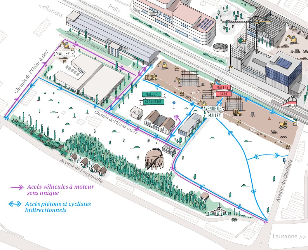 Suite au début des travaux de la nouvelle central de chauffage à distance et de l’avenue de Malley, un nouveau schéma de circulation sera mis en place de novembre 2024 à l’été 2025 dans le quartier. Une signalisation sera mise en place à cet effet.