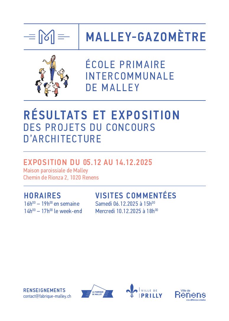 L’exposition sera l’occasion de découvrir la diversité des propositions architecturales, d’en savoir davantage sur ce futur bâtiment scolaire et la poursuite du développement du secteur de Malley-Gazomètre. Le bâtiment scolaire sera une école primaire regroupant 18 classes de 1-6P visant à accueillir à parts égales les futurs élèves prillérans et renanais du secteur de Malley et environs (quartiers de Longemalle, du Chêne et du Galicien). L’établissement permettra de scolariser environ 360 enfants. La mise en service de l’école est prévue pour la rentrée 2030. Une offre d’infrastructures sportives viendra compléter les salles de classes, avec une salle omnisports double qui disposera d’une buvette et de gradins pour 250 spectacteur·ice·s.